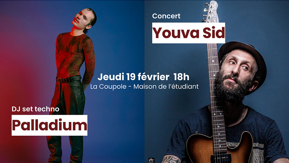 La direction vie de campus organise un concert le 19 février à 18h à la coupole de la Maison de l’étudiant, avec Youva Sid et Palladium.