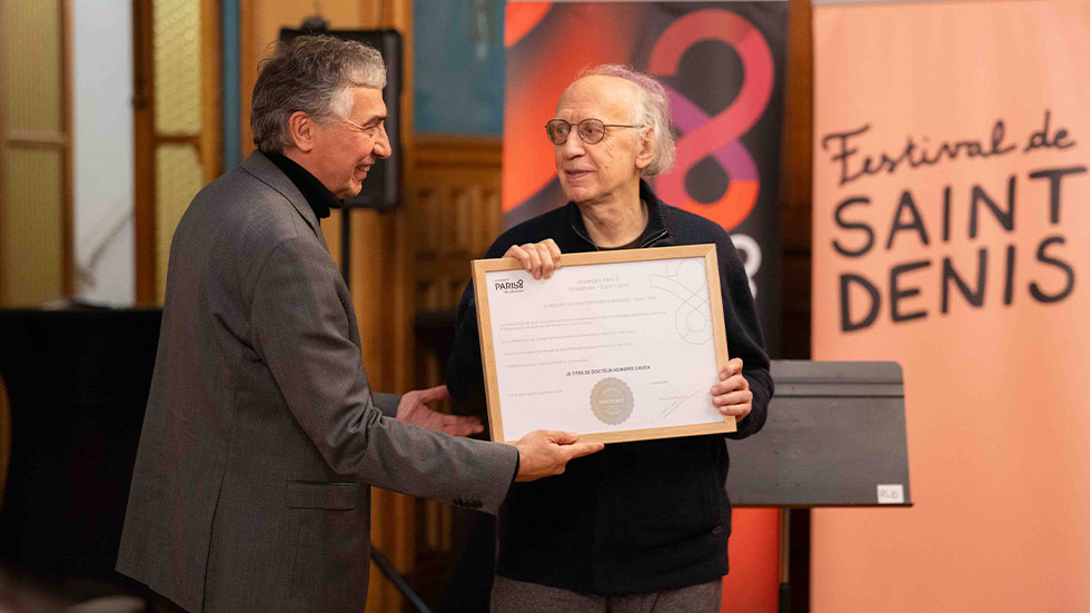 En hommage à son immense contribution à la musique contemporaine, à son engagement pour la liberté de création, en soutien à l’Ukraine et à tous ses partenaires ukrainiens, le président de l’Université paris 8, Arnaud Laimé a remis le titre de docteur Honoris Causa au compositeur Valentyn Silvestrov lors d’une cérémonie organisée à la Mairie de Saint-Denis le 26 mars dernier.