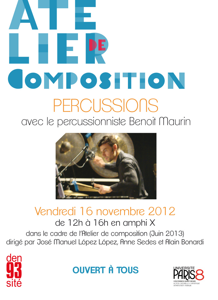 Le département Musique de Paris 8, le service Action Culturelle et Artistique et l’association Densité 93 vous proposent une démonstration de l’Atelier de composition "violoncelle et percussion" dirigé par José Manuel López López et Anne Sédes.