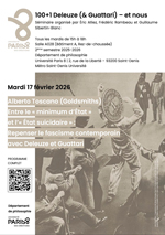 Le séminaire « 100+1 Deleuze (&Guattari) et nous » s’inscrit dans les recherches actuelles sur la philosophie de Deleuze (et de Deleuze et Guattari) au département de philosophie et au LLCP (le Laboratoire sur les Logiques Contemporaines de la Philosophie EA 4008). Il prend pour occasion la commémoration du centenaire de la naissance de Gilles Deleuze en 2025 (100 + 1) pour discuter les recherches en cours, de manière transdisciplinaire.