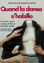 Les étudiants de danse organise un spectacle pour présenter leur travail artistique du second semestre 2025-2026.